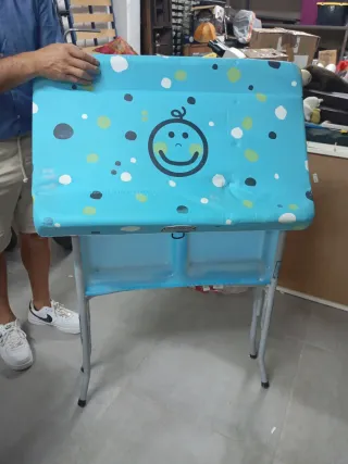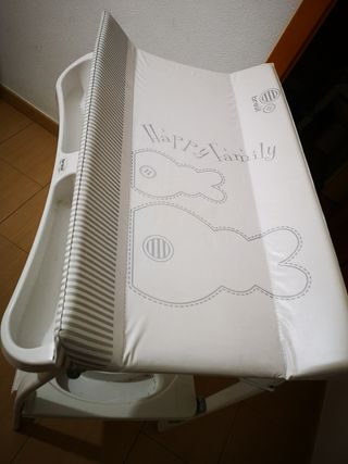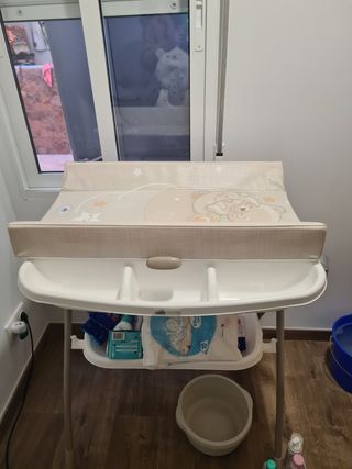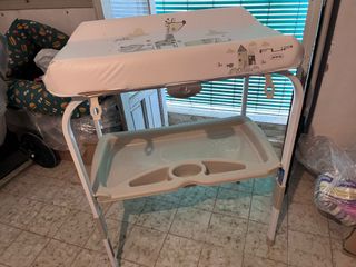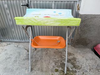 Cambiador con bañera para bebé, ideal para facilitar el aseo y el cambio de pañales. Se encuentra en buen estado. - Incluye cambiador y bañera. - Estructura plegable para facilitar el almacenamiento. - Diseño ligero y práctico.