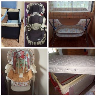 URGE VENTA!! trona con adaptador y doble bandeja, (se puede tumbar) cambiador con bañera, parque cuna con colchón de muelles/látex. REGALO!!! Silla para coche a partir del grupo 1/3 Todo en muy buen estado.