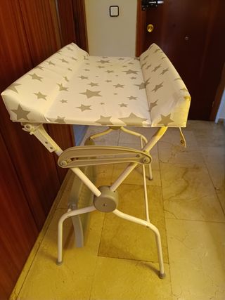 Cambiador de bebé JANÉ FLIP en buen estado. Incluye cambiador y bandeja inferior. - Estructura metálica ligera y fácil de montar. - Cambiador acolchado con estampado de estrellas. - Bandeja inferior para guardar artículos de higiene. - Perfecto estado de conservación. - Incluye también la bañera del cambiador en perfecto estado aunque no aparezca en las fotos.