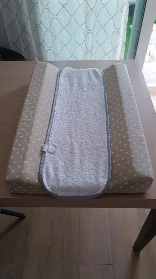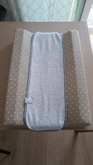 Cambiador para bañera o cómoda, con un diseño de topitos beige y blanco. Incluye una toalla suave de rizo. - Diseño de topitos beige y blanco. - Toalla de rizo incluida. Medidas: 68x47 cm