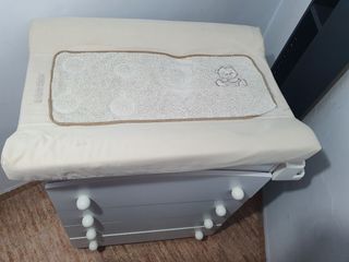 Cambiador con bañera (la bañera no sale en las fotos pero también la entregaría si se quiere) en buen estado , tiene dos pequeñas marcas en el acolchado pero está en buenas condiciones, poco uso. Desde 0 hasta 12 meses. Precio nueva 150 euros