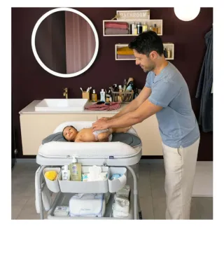 Práctica bañera cambiador para bebés, ideal para el cuidado diario. - 3 resistente y estable. - Bandejas organizadoras. - Plegable para fácil almacenamiento.