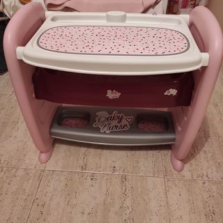 Conjunto de juegos Smoby Baby Nurse en color rosa. Ideal para cuidar muñecas. - Incluye cambiador, bañera y columpio. - Perfecto estado, apenas usado. - Material plástico resistente y fácil de limpiar.