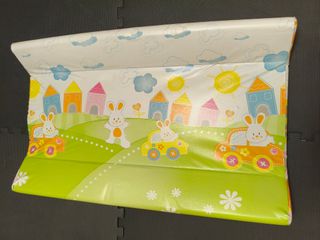 Cojin para cambiador para bebeacolchado con un divertido diseño infantil de conejitos y casitas. Lavable, suave y duradero Interior de esponja suave, exterior de material plástico que no es tóxico Nuevo, nunca utilizado. Tiene un pequeño desperfecto que se observa en la foto, de ahi su precio