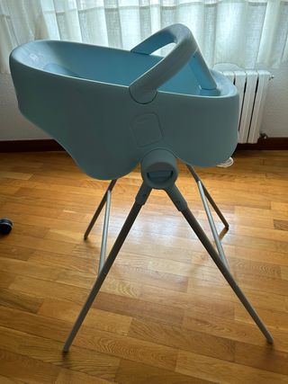Bañera y cambiador para bebés, ideal para el cuidado diario. - Diseño ergonómico para mayor comodidad. - Superficie de fácil limpieza. - Incluye desagüe para vaciado. - La altura es modulable. - La bañera sin estrenar. - La fundita lavable del cambiador no aparece en la foto pero también se incluye y en perfecto estado. Medidas: - Alto: 0.93 m (Max 1 m) - Fondo: 0.70 m (con cuencos incluidos) - Largo: 0.80 m