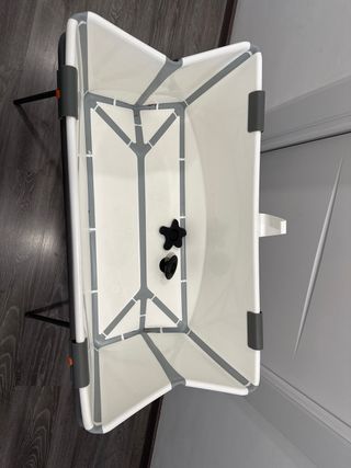 Soporte para la bañera Stokke Flexi Bath. Nuevo, en su embalaje original. Lo monté una vez, no me servía y no lo he vuelto a usar. - Estructura plegable. - Patas antideslizantes.