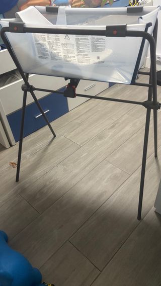 Bañera para bebé con estructura plegable de color blanco. Está en muy buen estado. - Incluye bañera y soporte plegable. - Material plástico resistente. -esta en muy buen estado pero el dibujo de arriba esta borrado, el de abajo esta bien