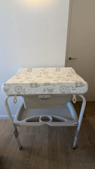 Bañera cambiador Jane Flip para bebés. - Diseño con estampado de animales. - Bandeja inferior para accesorios. - Patas ajustables en altura. Ver las fotos para desperfectos.