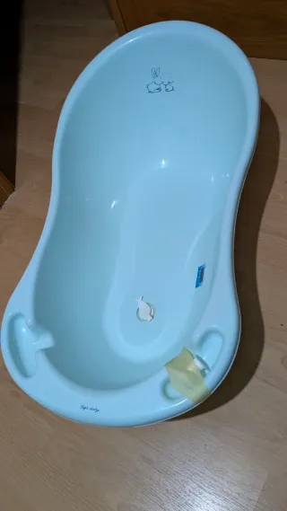 Bañera de bebé con un diseño ergonómico y práctico. - Estructura plegable para un fácil almacenamiento. - Patas estables para mayor seguridad. - Prácticamente nueva como se ve en las fotos.