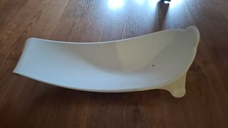 Bañera para recién nacidos Flexi Bath en perfecto estado. Es de color blanco roto y tiene una forma ergonómica. Compatible con la bañera Stokke. - Ideal para bebés recién nacidos. - Material plástico resistente y ligero. - Diseño flexible y cómodo.