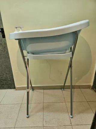 Bañera para bebé en muy buen estado, utilizada solo durante 4 meses. Ideal para facilitar el baño del pequeño. - Color gris. - Incluye soporte plegable.