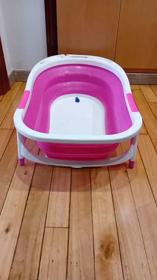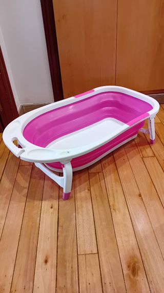 Bañera plegable para bebé, utilizada una sola vez y en excelente estado. Su diseño combina blanco y rosa. - Material: Plástico. - Color: Blanco y rosa. - Plegable para fácil almacenamiento.