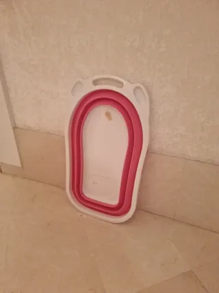 Bañera plegable para bebés, ideal para ahorrar espacio. Su diseño permite un fácil almacenamiento. - Color blanco con borde rosa. - Material flexible y resistente. - Asas para un transporte cómodo. 75x45cm 22cm de profunda Ideal para viajes o para tener en segundas residencias con plato de ducha. O para ahorrar agua evitando bañeras llenas