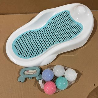 Kit de baño para bebé que incluye una bañera plegable y su soporte. - Bañera para bebe recién nacido. La compre nueva y tiene poco uso. Esta guardada en su caja por eso no tengo fotos reales. ¿Qué incluye? • Bañera de 30 L: Plegable y que ahorra espacio. • Soporte para bañera: Para una altura ergonómica y cómoda. • Cojín de baño: Ajustable para un ajuste perfecto y confort. • Enjuagador: Enjuague fácil y suave del cabello y el cuerpo. • Juguetes de baño: Para que el baño sea aún más divertido. • Manguera de drenaje: Vaciado práctico y sin derrames.