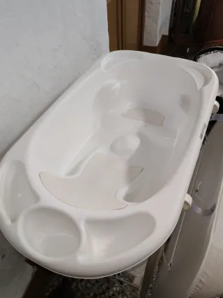 Bañera bebé de Jane,la estructura está en perfecto estado le falta el antideslizante pero se puede comprar yo prefería que no lo llevara y el cambiador como se aprecia está rajado,yo lo usaba con su funda y solucionado.tengo 3 a la venta que las regalaría