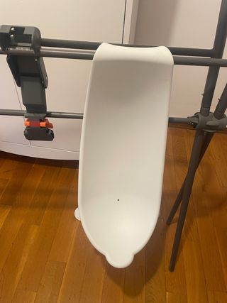 Hamaca para bañera Stokke en buen estado. Diseñada para ofrecer comodidad y seguridad durante el baño del bebé. - Color blanco. - Material resistente y fácil de limpiar.