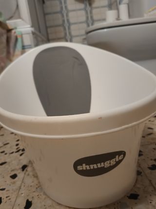 Bañera ergonómica para bebés de la marca Shnuggle. Diseñada para ofrecer comodidad y seguridad. - Color blanco y gris. - Base antideslizante.