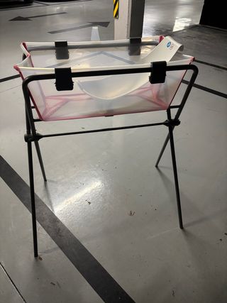 Soporte blanco para bañera de bebé. Diseñado para colocar la bañera a una altura cómoda. - Estructura metálica. - Diseño plegable para fácil almacenamiento. - Bañera no incluida, se vende a parte.