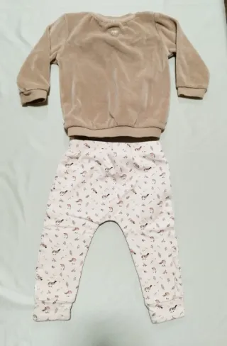 Conjunto de pijama de dos piezas para bebé con un divertido estampado de estrellas. - Tejido suave y cálido. - Diseño de estrellas multicolor sobre fondo gris. - Incluye camiseta de manga larga y pantalón. - Puños elásticos en mangas y pantalón. - Talla 9-12M. 74CM