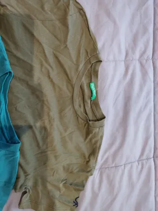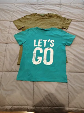 Lote de dos camisetas de la marca Benetton. - Camiseta verde militar. - Camiseta azul con estampado LET'S GO.