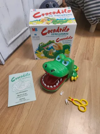 Divertido juego de mesa Cocodrilo Sacamuelas de MB. - El cocodrilo tiene dientes que se pueden presionar. - Incluye pinzas para sacar los dientes. - Ideal para jugar en familia.