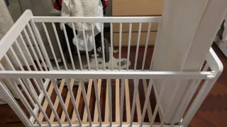 Cuna de bebé de la marca Ikea, en color blanco. Un mueble esencial para el descanso del bebé. - Diseño de barrotes. - Estructura de madera.