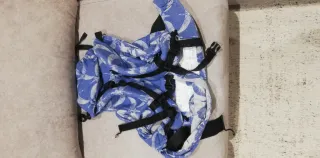 Mochila de porteo de la marca Minimeis. - Diseño ergonómico para hombros. - Correas ajustables. - Sujeción en cuerpo y piernas para evitar el balanceo. - Ligera y compacta. - A partir de 6 meses. Ideal para ver a los gigantes. La hemos usado durante 2 años en Sanfermines y estamos encantados. Nueva vale 100€