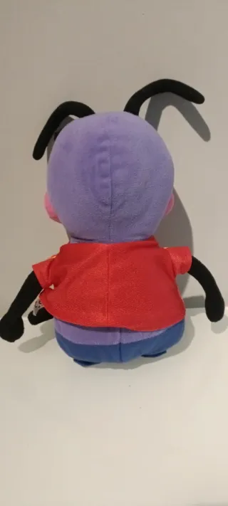 Peluche de la Hormiga Trankas, un personaje divertido y colorido. - Diseño de hormiga con antenas. - Ropa de futbolista con escudo. - Ojos saltones y boca grande.