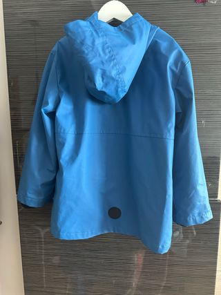 Chubasquero azul para niño. - Talla 6 años (116 cm). - Capucha. - Detalle circular reflectante en la parte trasera. Cada uno 15€ Son de la marca Kids del Corte Inglés