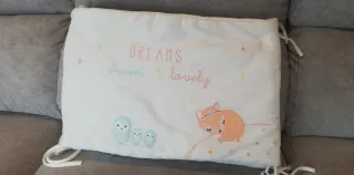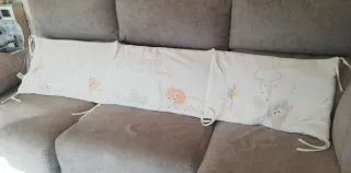 Chichonera para cuna con un bonito diseño bordado de animales y nubes. Medidas : 181x39