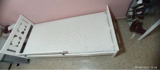 Se vende cama infantil de Ikea en buen estado, con colchón incluido. - Medidas de 80cm de ancho. - Estructura de madera blanca. - Incluye colchón.