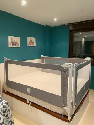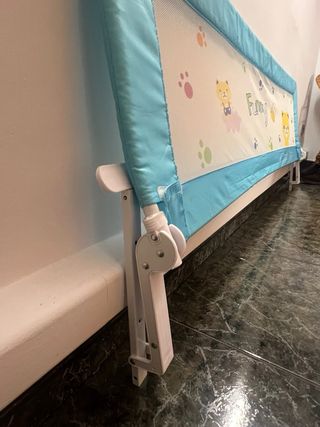 Barandilla de seguridad para cama de bebé, ideal para evitar caídas durante la noche. - Plegable para facilitar el acceso. - Material resistente y seguro. - Diseño discreto y funcional.