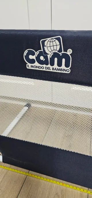 Barandilla de seguridad para cama de la marca Cam. Es un accesorio práctico para la seguridad de los más pequeños. SE REGALA OTRA PATA ARREGLAR - Color azul marino. - Estructura de metal. - Tejido de malla. Tamaño LARGO 150cm ALTURA 44cm, se regala otra barandilla para arreglarla