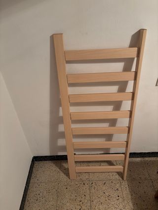 Barandilla de madera para cama, ideal para prevenir caídas. - Estructura de madera clara. - Diseño de escaleras.