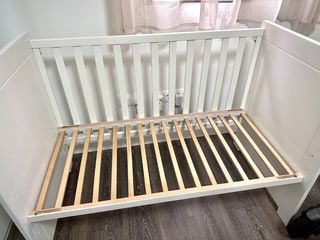 Cuna en perfectas condiciones , cuna evolutiva, con barandilla regulable en altura.