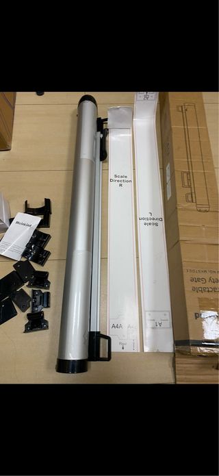 Puerta de seguridad para niños retráctil de la marca Meinkind, nueva. Es de color plateado y se encuentra en su embalaje original. Se adapta a huecos hasta 120 cm - Incluye todos los componentes para su instalación. - Fácil de instalar y usar. - Material resistente y duradero. Barrera seguridad barandilla de seguridad