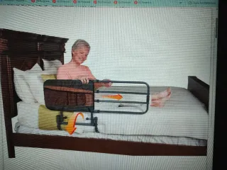 Barandilla de seguridad para cama, ideal para prevenir caídas. Ideal para persona mayor o niños y evitar caídas. De ortopedia. Se ha usado 3 meses. - Estructura metálica blanca. - Asa superior acolchada en negro. - Patas ajustables en altura.