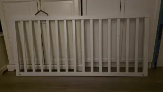 Barandilla de seguridad de IKEA para camas de niños. Ayuda a prevenir caídas durante la noche. Tenemos 2 barandillas. Vendemos una por 10€, o las dos por 15€. - Color blanco. - Material: Metal, madera y plástico.