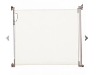 Barrera de seguridad infantil enrollable blanca. Largo adaptable hasta 140 cm y 85 cm altura.