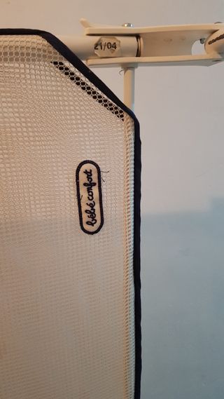 Barandilla de seguridad para cama de la marca Jane. Es larga y ayuda a prevenir caídas. - Color: Blanco y beige. - Material: Malla y metal.