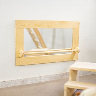 Hola, somos una marca de mobiliario y decoración. Hacemos todos nuestros productos a mano, con materiales sostenibles. ENVÍOS A TODA ESPAÑA Espejos montessori únicos, hechos a mano con madera sostenible. Gracias a su barandilla, los más peques podrán desarrollar sus habilidades motrices básicas. Su diseño simple se adapta a cualquier habitación infantil a la perfección, creando un entorno acogedor gracias a la madera natural sin tratar. Con cristal de seguridad. - Tamaño: 74 x 44 cm + info en most-deco.com o WhatsApp: 644080195
