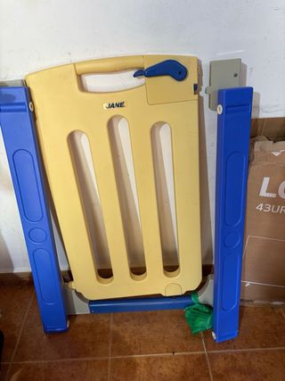 Barandilla de seguridad de la marca Jane, ideal para proteger a los más pequeños. Su diseño es práctico y fácil de instalar. - Color amarillo y azul. - Mecanismo de cierre seguro.