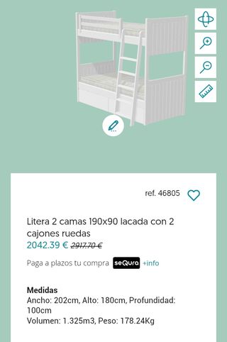 Litera+cajones+barandilla+2 colchones 190x90+jardi