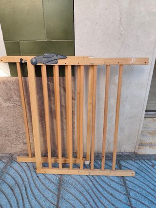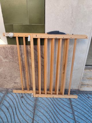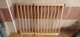 Se venden 3 Barandillas de seguridad de madera para niños. Ideal para proteger escaleras o pasillos. Ajustables ancho desde 70 cm a 105 y altura de 70 cm - Material: Madera natural. - Diseño de barrotes verticales.