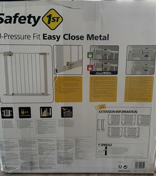 Preciosa barandilla de seguridad para niños y mascotas de la marca Safety 1st. Es de metal, de fácil cierre y se adapta a aberturas de 73cm a 80cm (extensible hasta 136cm). - Sistema de cierre SecureTech. - Fácil instalación. - Material metálico resistente. - Ideal para puertas y escaleras. oferta!!!