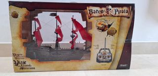 Barco pirata de juguete con control remoto, luces y sonidos. Ideal para coleccionistas o para jugar. - Barco pirata con velas rojas. - Mando a distancia incluido. - Diseño detallado de barco de época.