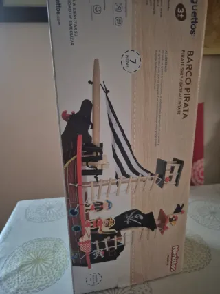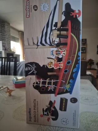 Barco pirata de madera de la marca Nenittos. - Edad recomendada: 3+ años. - Material: Madera. - Incluye 7 piezas.