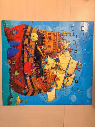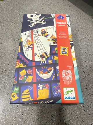 Divertido puzzle de la marca Djeco con temática de piratas y un barco. - 36 piezas. - Medidas: 90cm x 35cm. - Ilustración colorida y detallada.