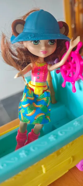 Set de juego de Enchantimals con barco y figura de mono Su precio no es 1€, escucho ofertas razonables. - Barco con diseño inspirado en la jungla. - Incluye figura de Merit Monkey. - Colores vibrantes y detalles temáticos.