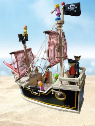 Barco Pirata de Madera y figuras escala playmobil